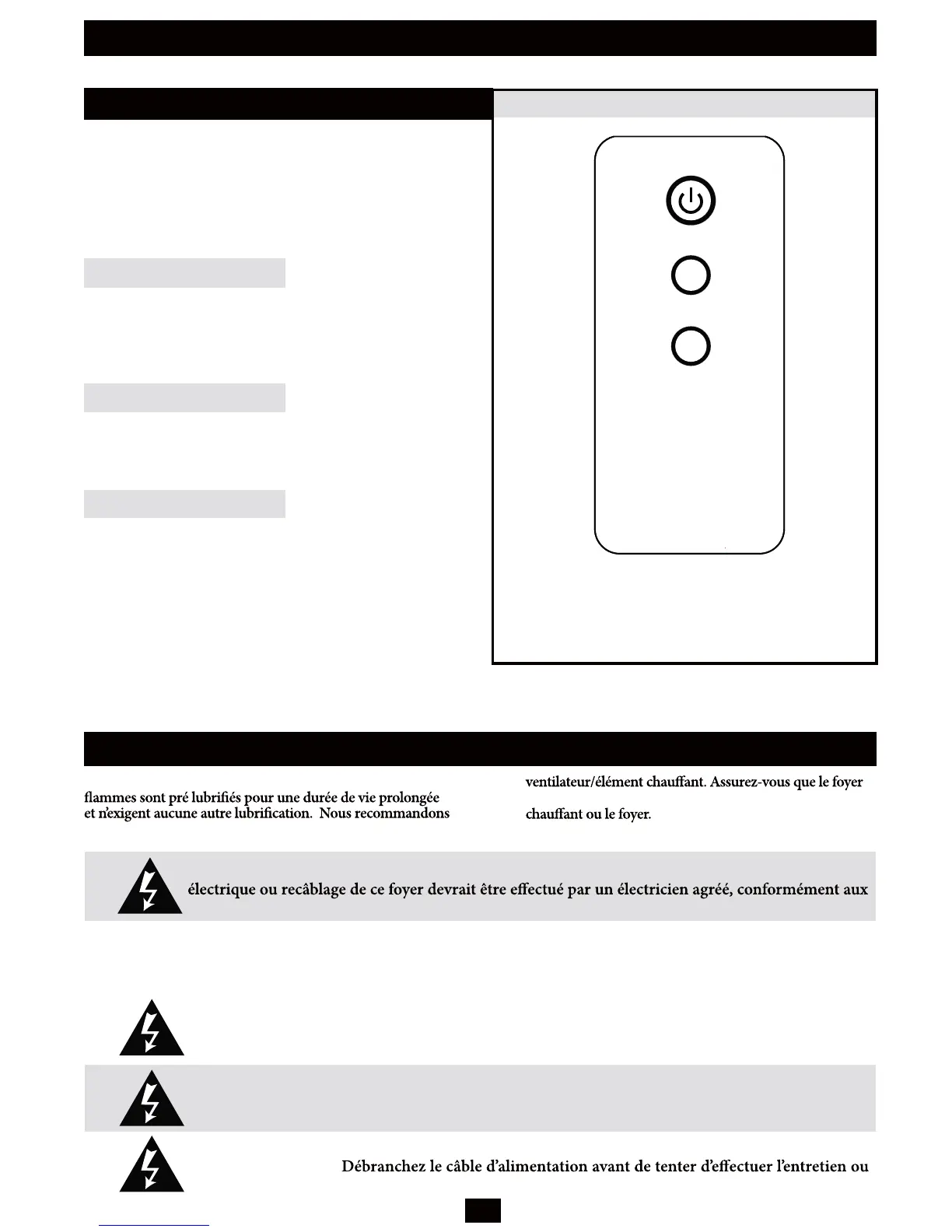 A p pelez immédia temen t un technicien deserviceagréé pour faire inspecter le foyer et rem placer