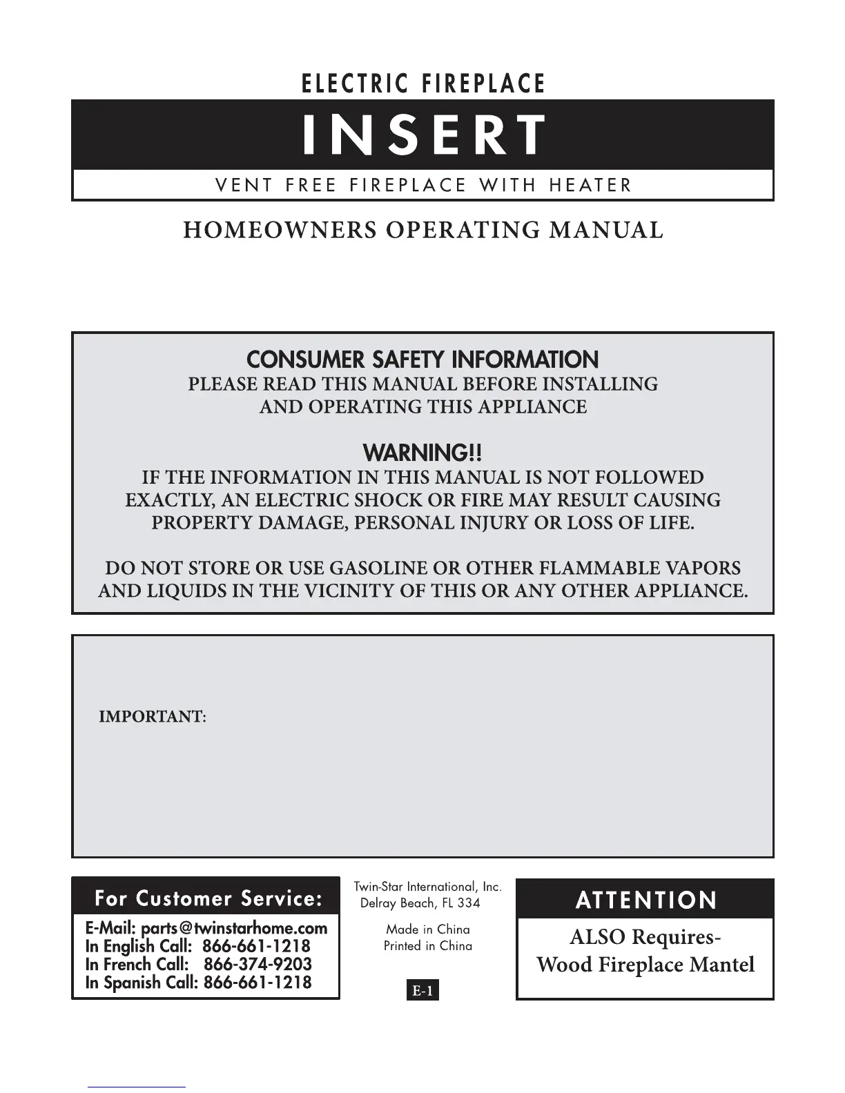 Thank you and congratulations on your purchase of a Twin-Star fireplace.