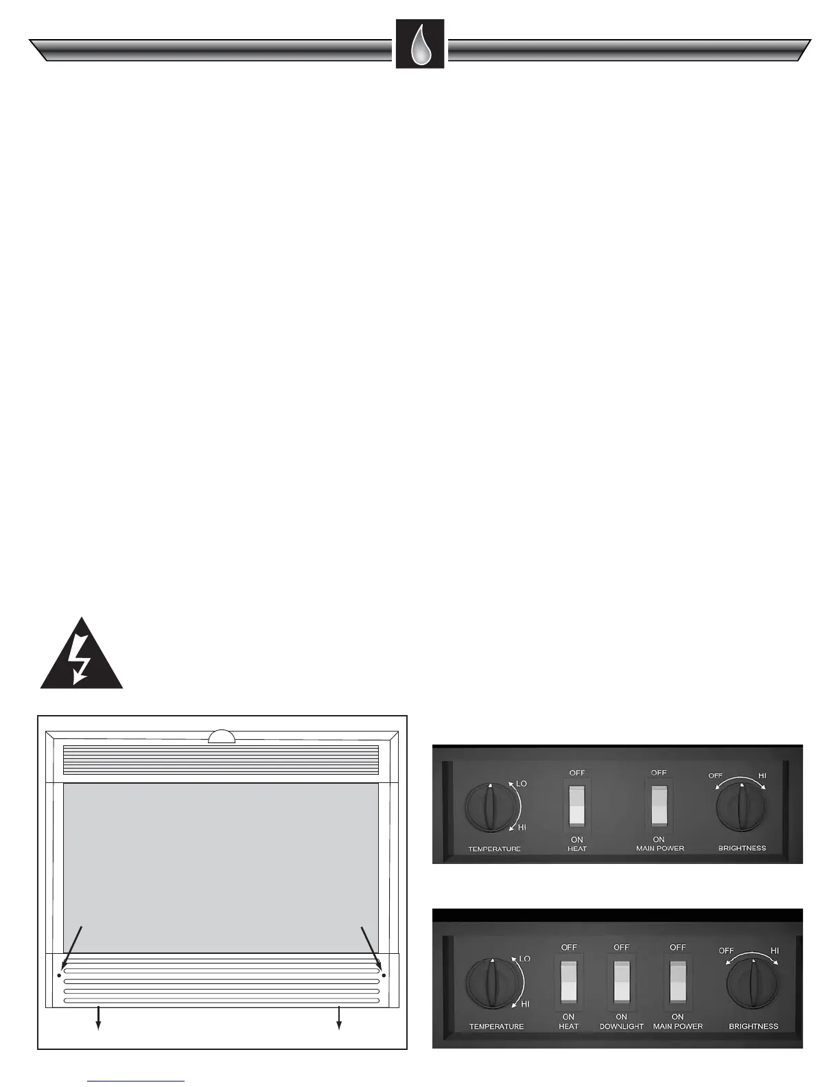 ClassicFlame 33E01 - CONTROL FUNCTIONS AND OPERATION; Main Power and Heater Controls; Temperature and Brightness Adjustment