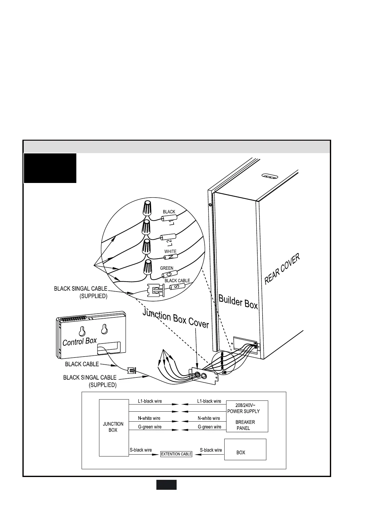 3.) Pull out the 5 wires marked L1, L2, N, G, S from the junction box on the side of the