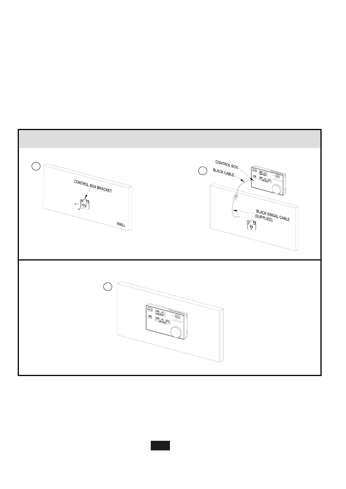 1. Mount the control box bracket to the wall using provided screws.