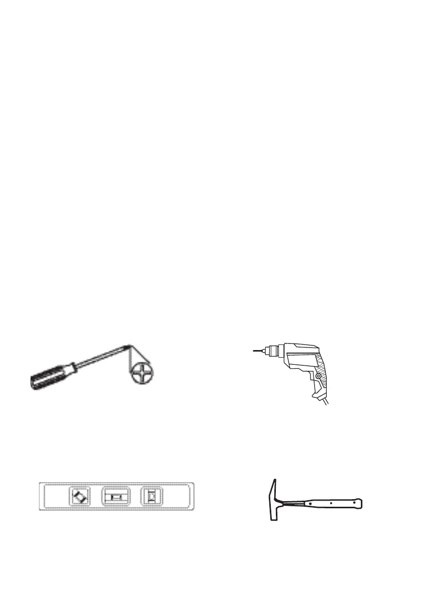 Outils requis pour l’assemblage (non inclus) : Tournevis cruciforme, perceuse, marteau, niveau