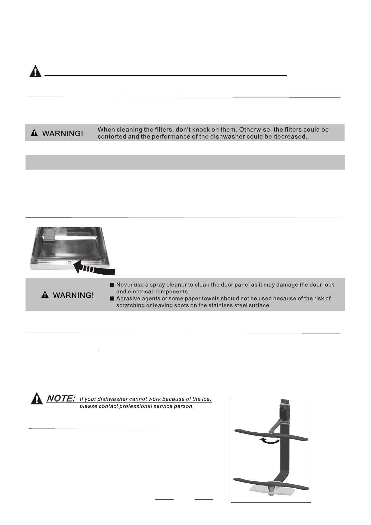 - Inspect the filters for blocking after every time the dishwasher has been used.