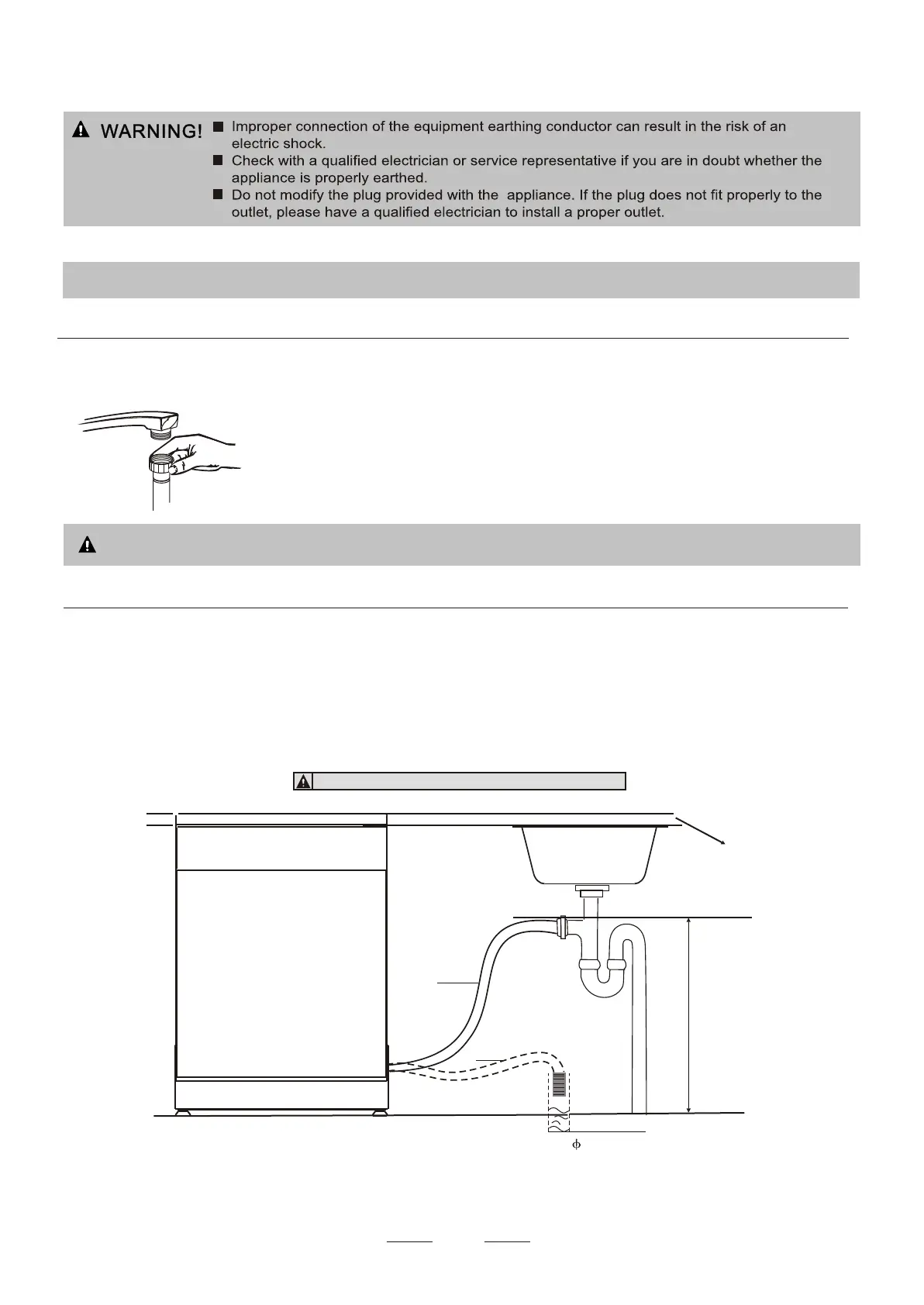 Insert the drain hose into a drain pipe with a minimum diameter of 40mm, or let it run into the sink, making sure to