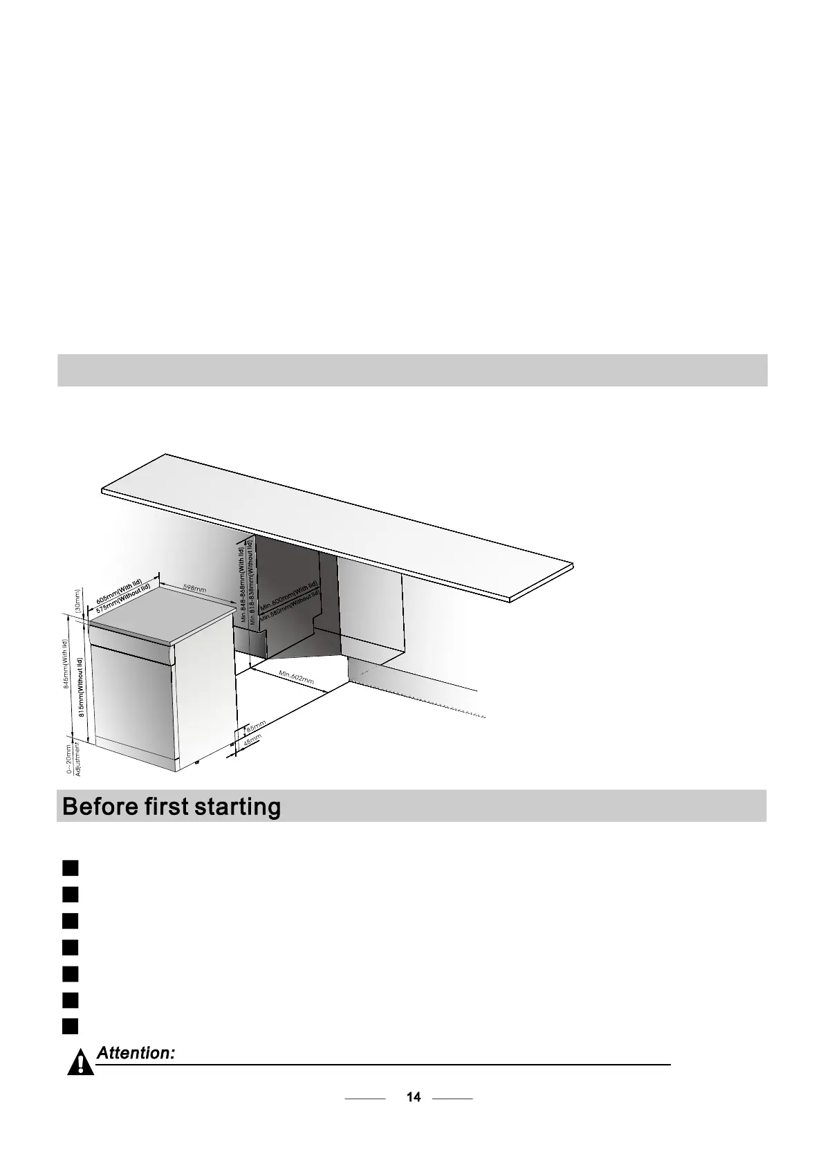 When installing the dishwasher into cabinetry, be sure to observe the minimum space requirements as shown