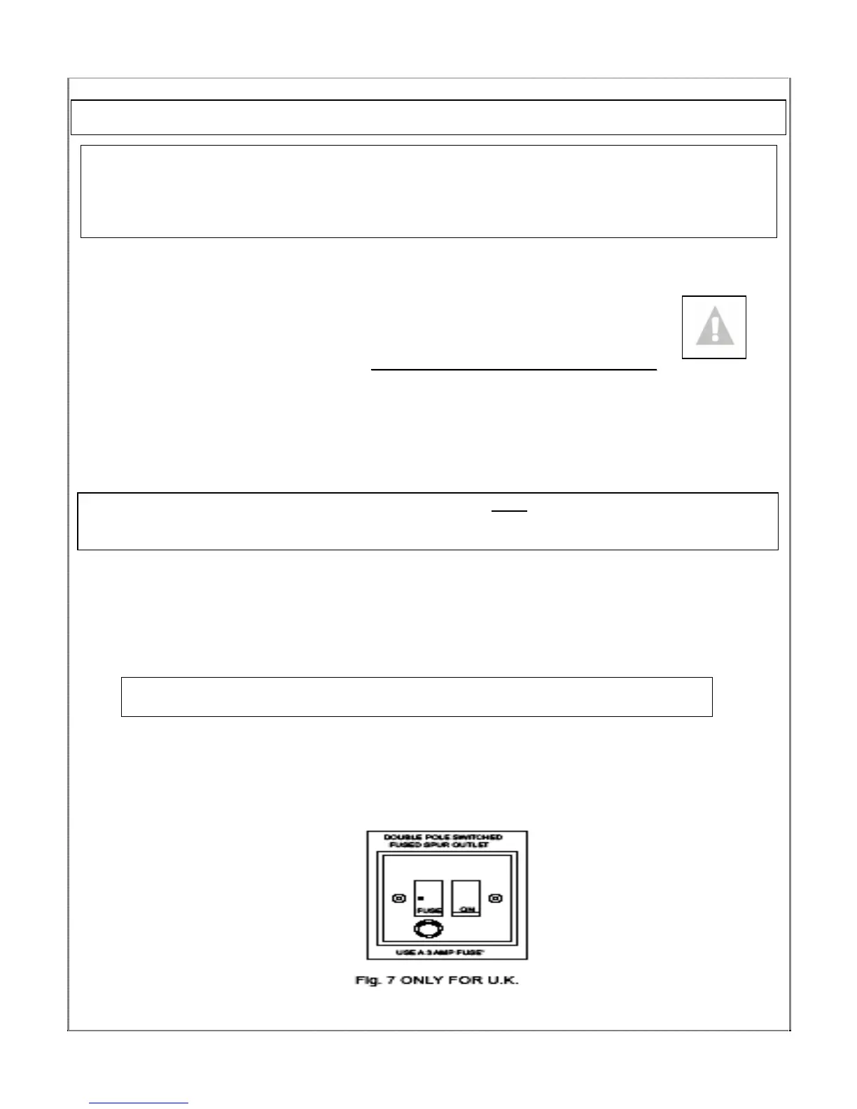 NOTE: (UK only) WARNING – THIS APPLIANCE MUST NOT