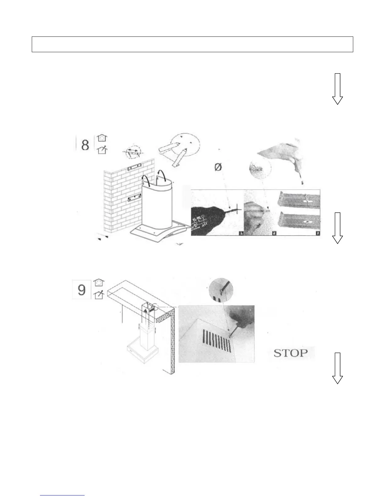 8) Insert the expansion fixings (raw plugs) provided, put bracket