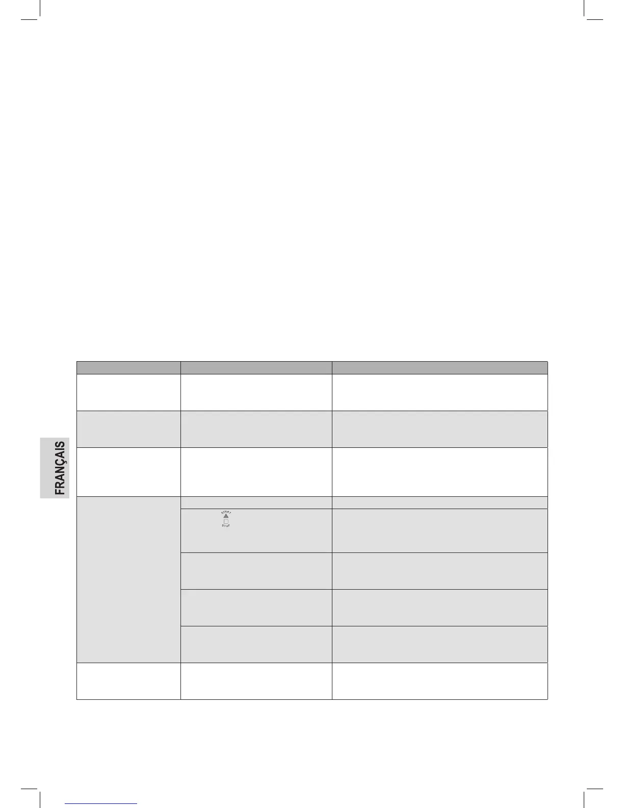 Mauvais réglage du programme Vériez le menu sélectionné et les autres réglages.