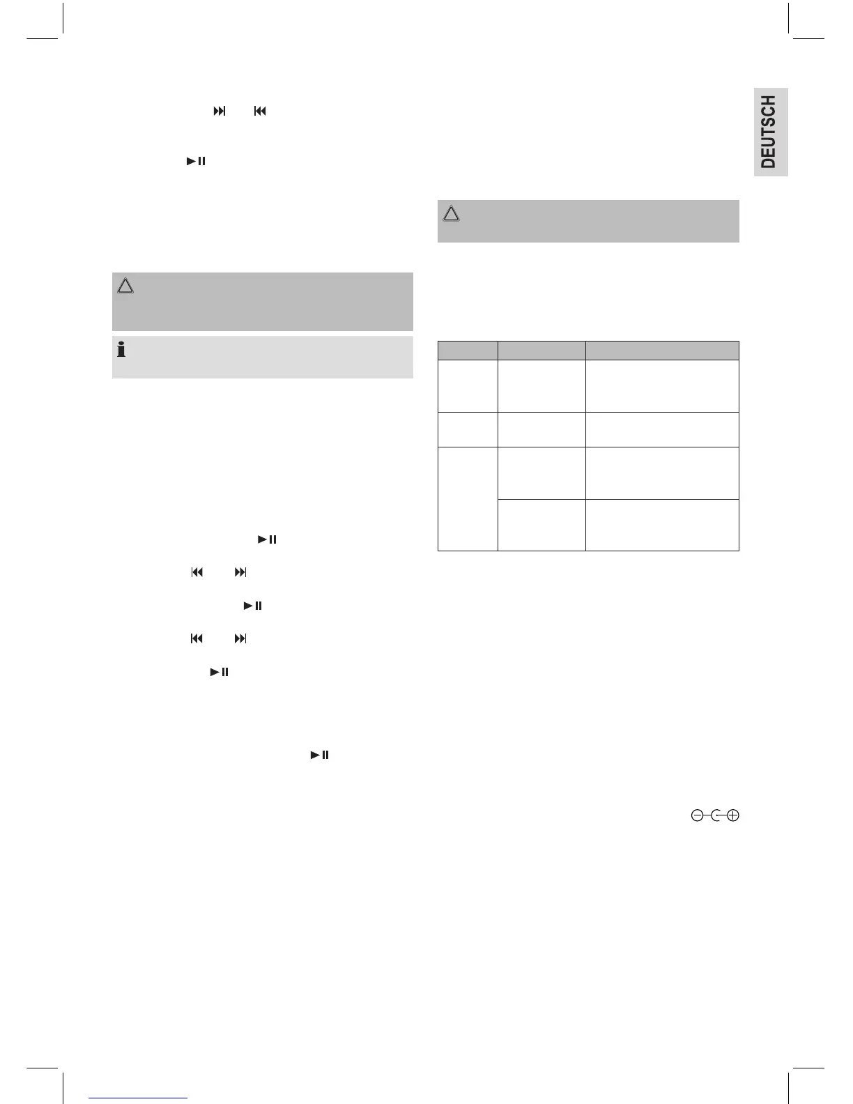 nächsten bzw. vorherigen Titel. Halten Sie die Tasten
