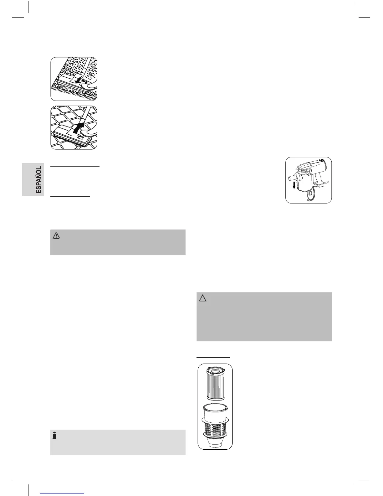dora. Puede colocar la boquilla para rincones y la boquilla