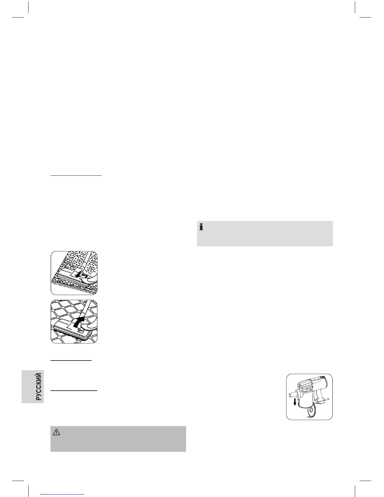 4. С помощью рычага отрегулируйте насадку для пола в