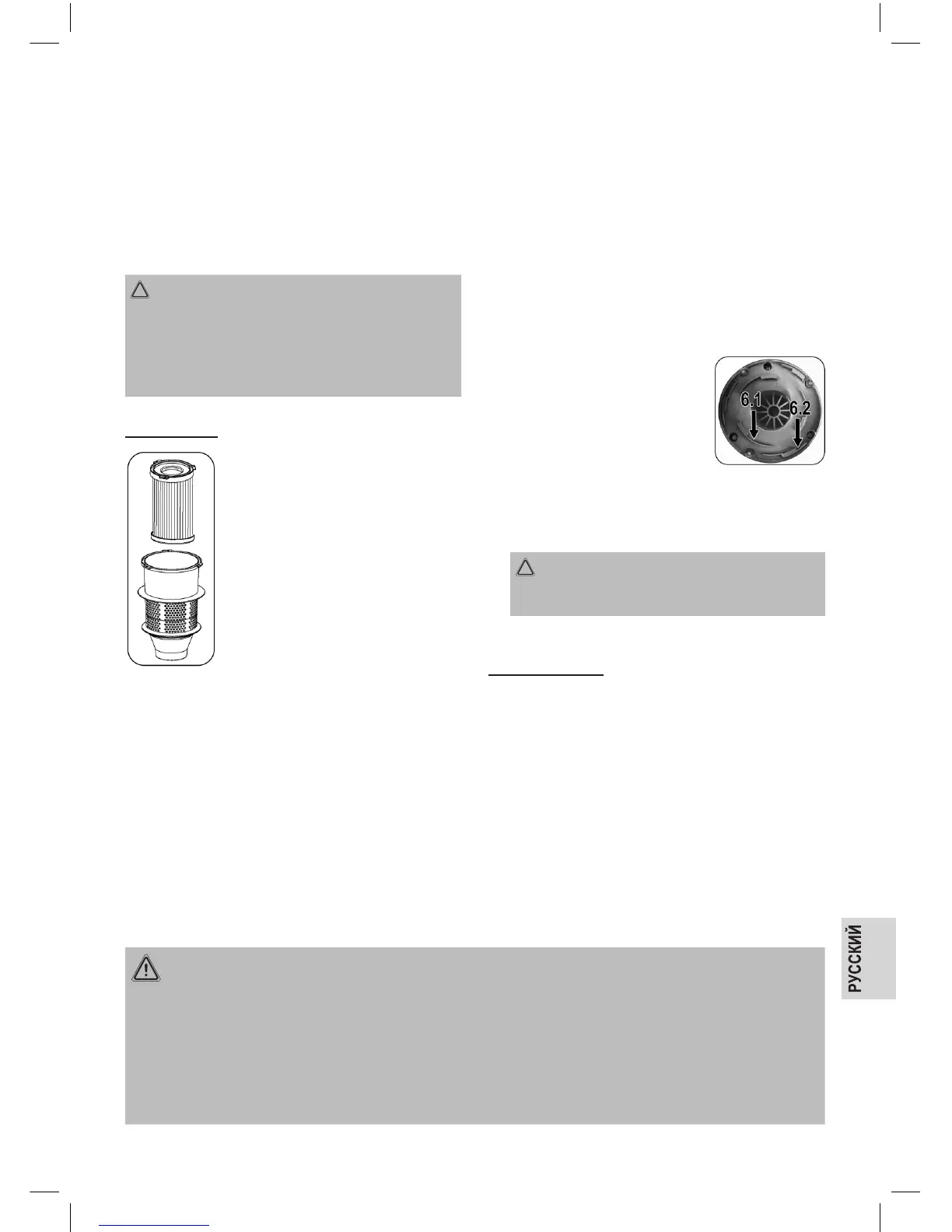 4. Закройте крышкой выпускной фильтр. Поворачивайте