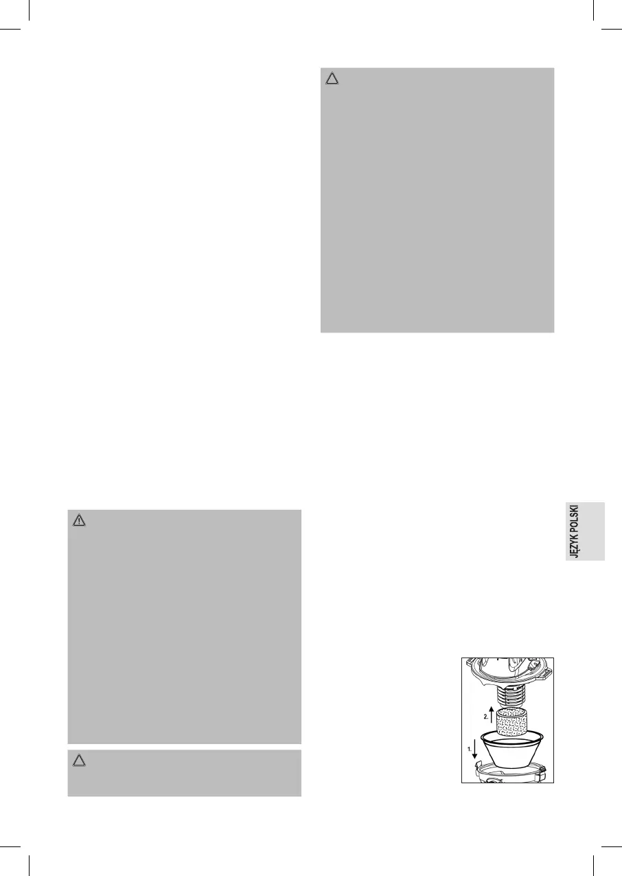 • Podczas odkurzania cieczy należy zawsze zdejmować