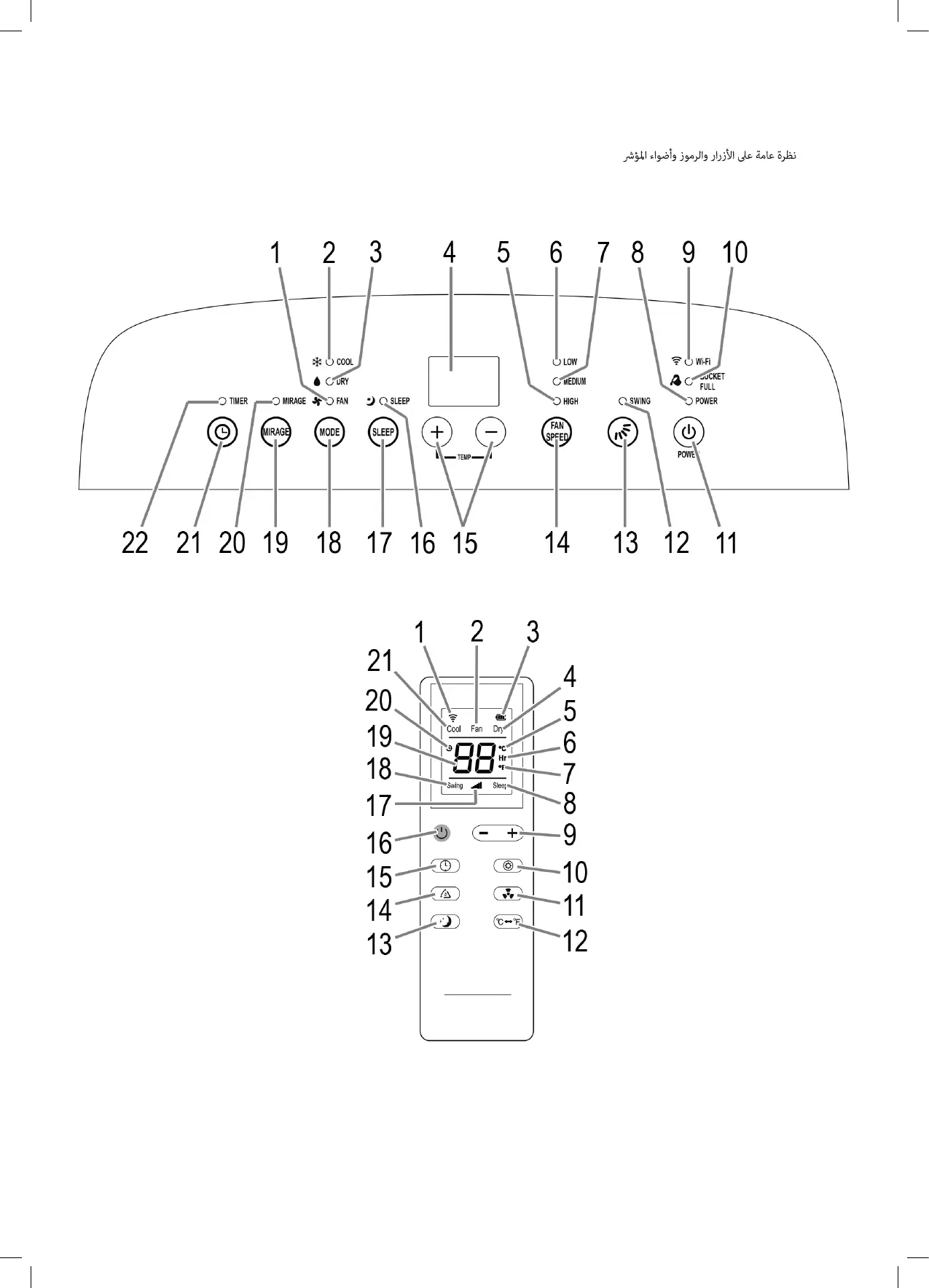 Overview of Buttons, Icons and Indicator Lights Rozmieszczenie przycisków, piktogramów i kontrolek