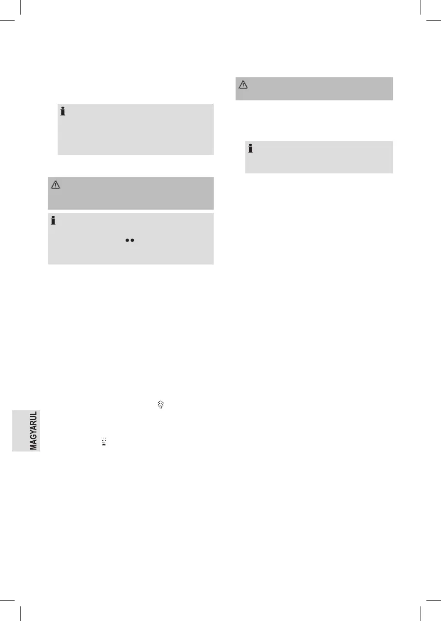 • Amint a vasaló vízszintes helyzetbe kerül, gőz kezd
