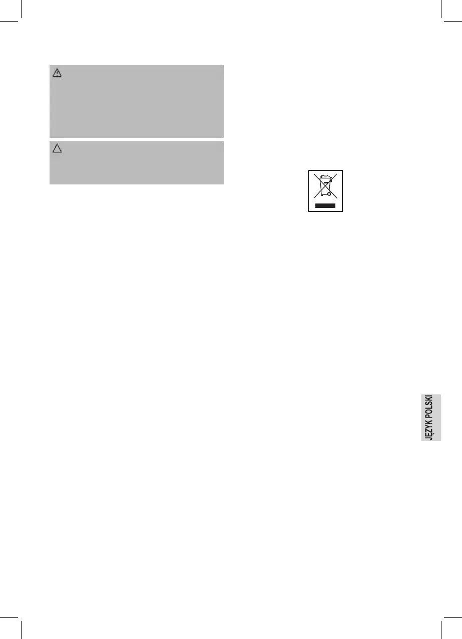 • Urządzenia parze nie wolno do czyszczenia zanurzać w