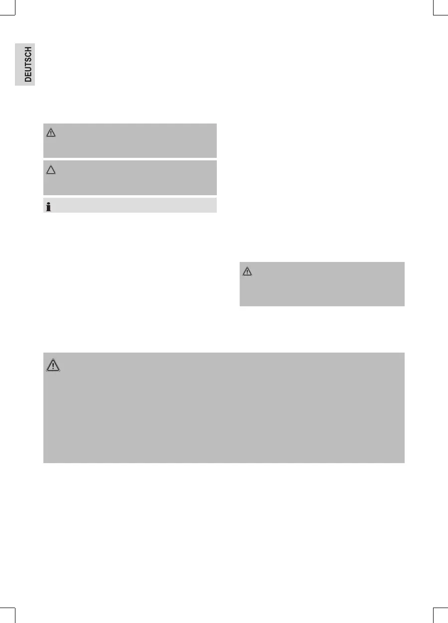 • Das Gerät nicht unbeaufsichtigt betreiben. Falls Sie den