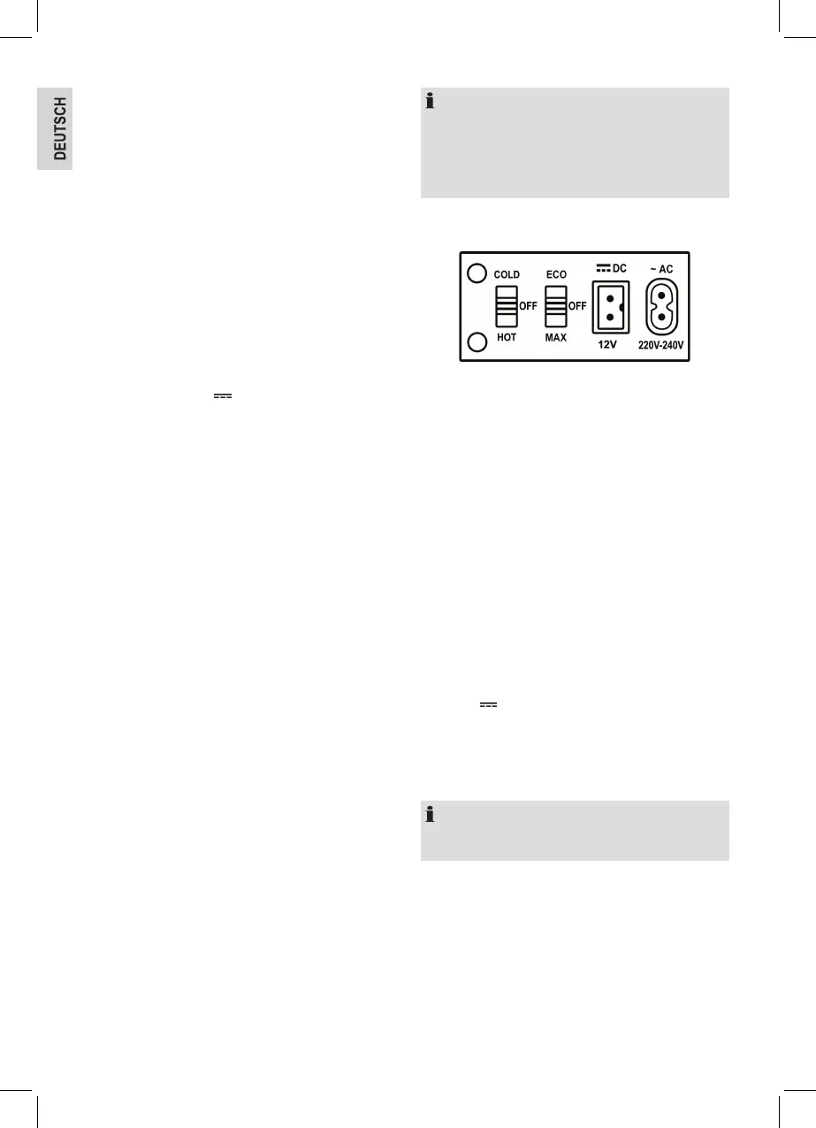 • Mit den Schaltern ECO – OFF – MAX und COLD – OFF –