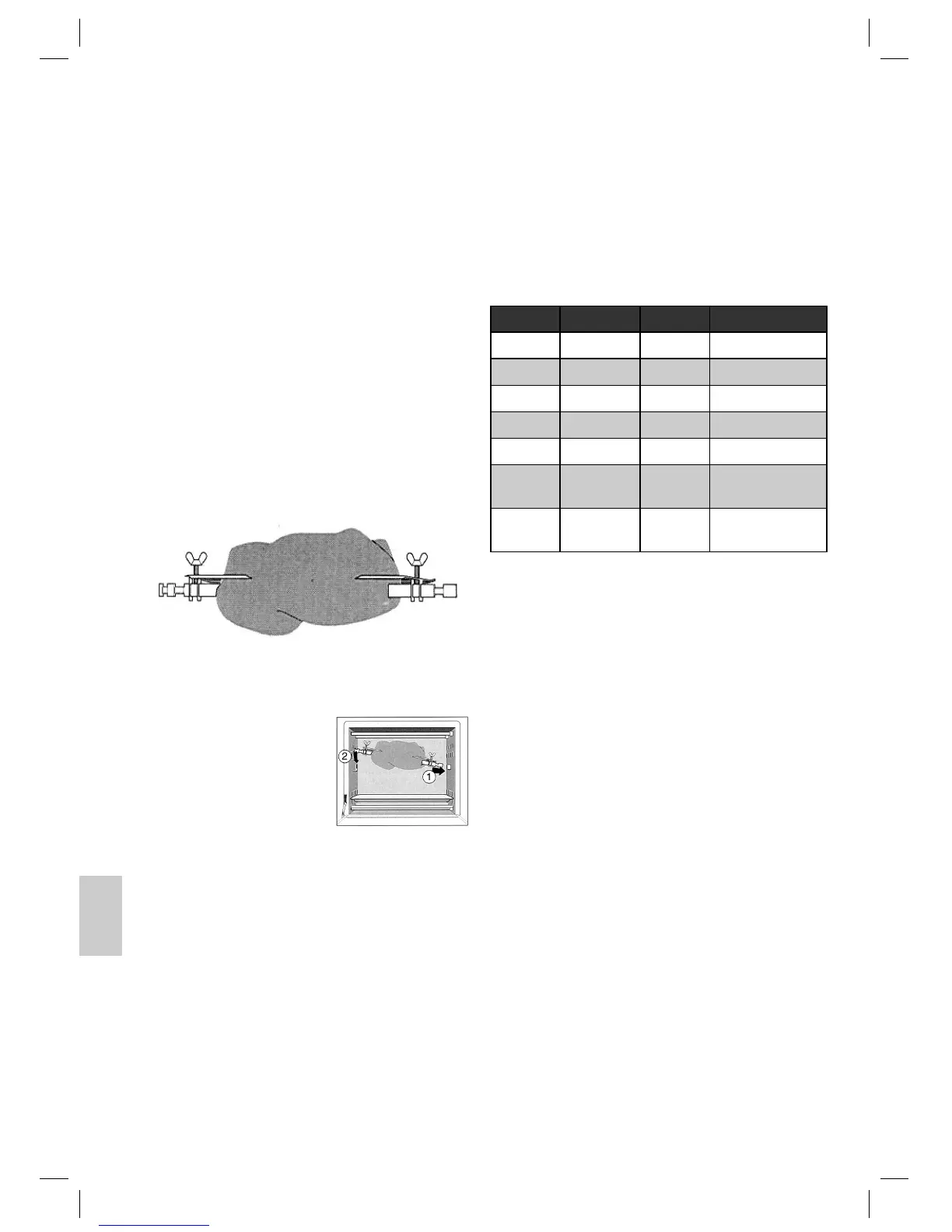 na otočný rožeň. Na otočný rožeň nasuňte fi xační svorky a