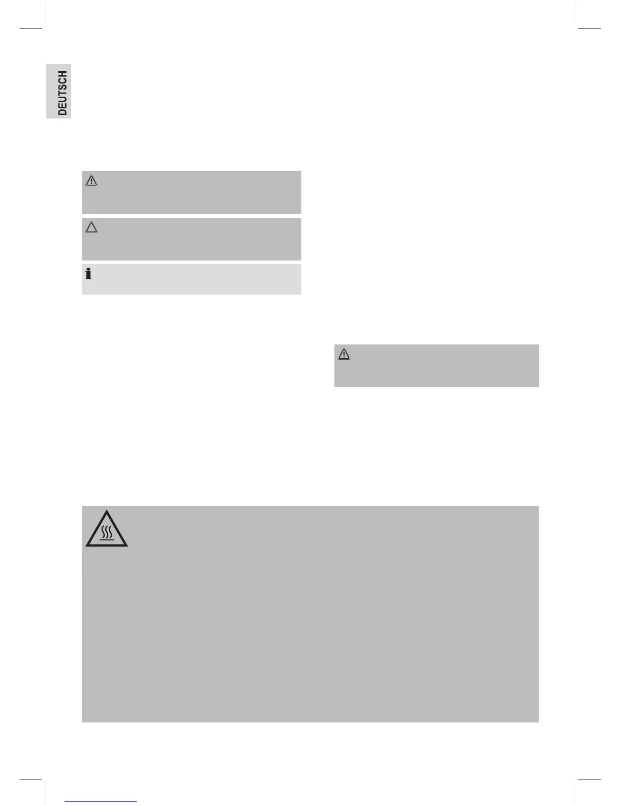 • Berühren Sie nicht die heißen Teile des Gerätes.