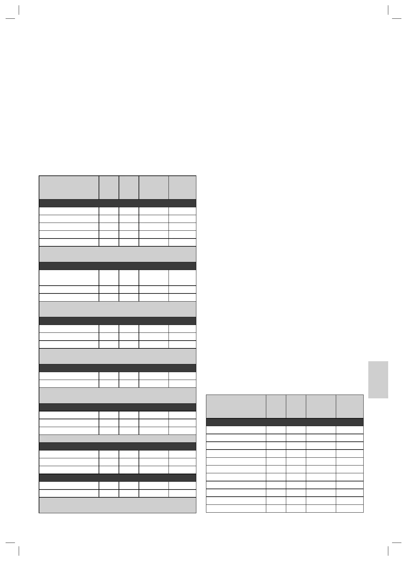 Proszę przestrzegać danych orientacyjnych, zawartych z tabeli