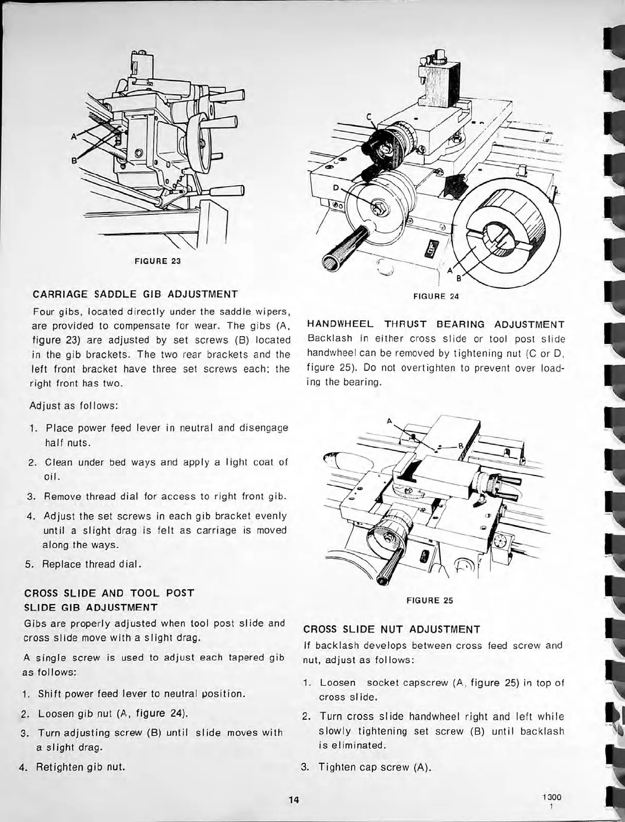 CLAUSING 1300 Series - Cross Slide Nut Adjustment; Gib Adjustments; Handwheel Thrust Bearing Adjustment