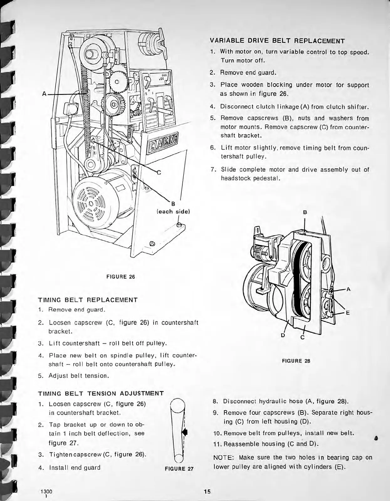 CLAUSING 1300 Series - Timing Belt Replacement; Timing Belt Tension Adjustment; Variable Drive Belt Replacement