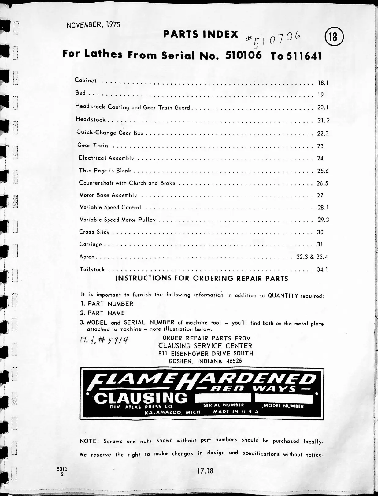 CLAUSING 5910 Series - Instructions for Ordering Repair Parts