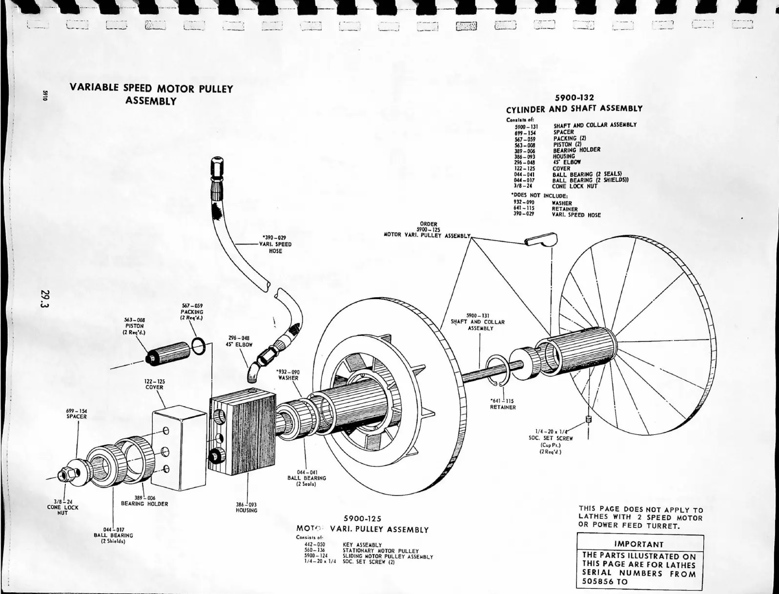 CLAUSING 5910 Series - Variable Speed Motor Pulley Assembly Diagram; Variable Speed Motor Pulley Components