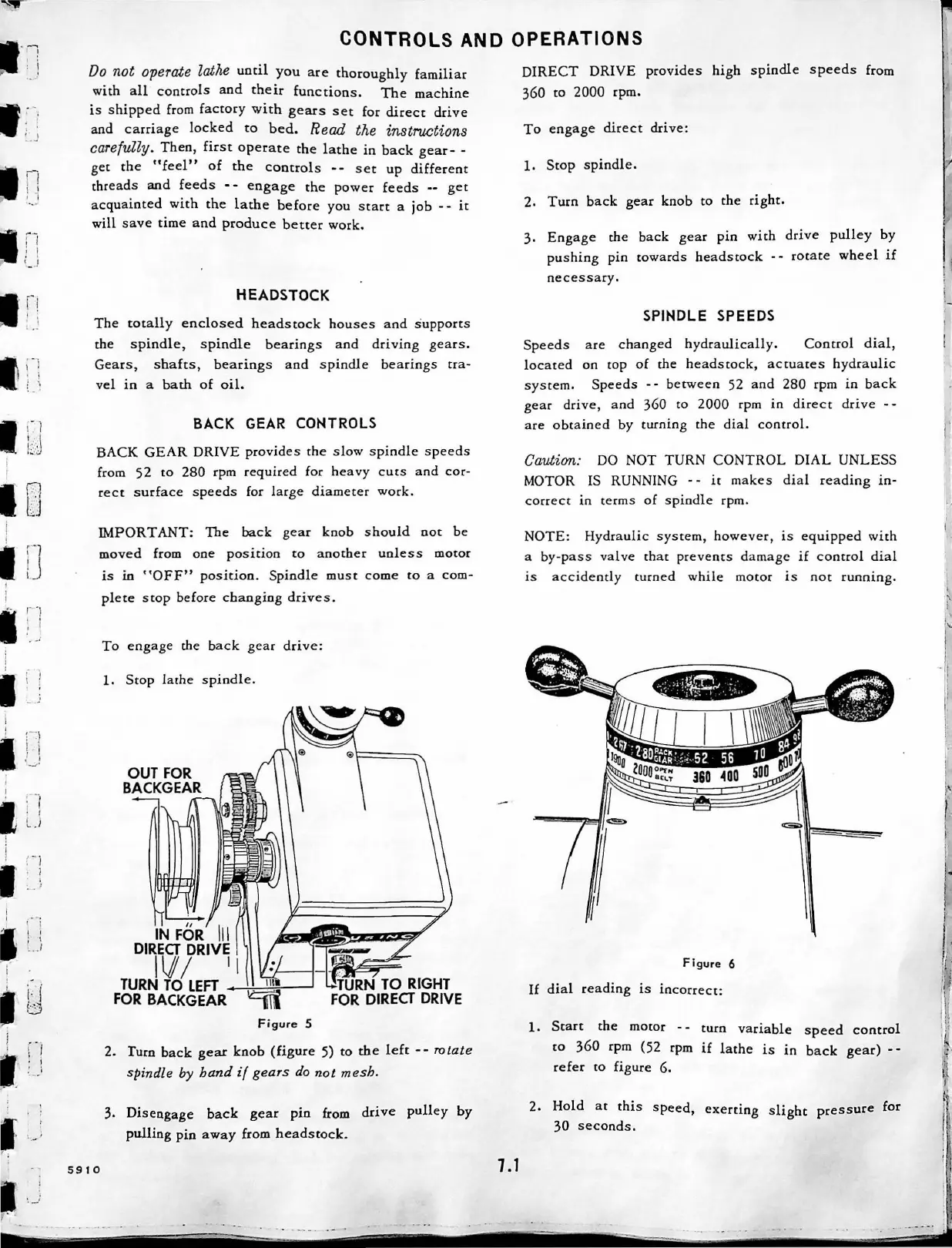 CLAUSING 5910 Series - Lathe Controls and Operations; Understanding Direct Drive and Back Gear; Headstock and Spindle Speed Controls