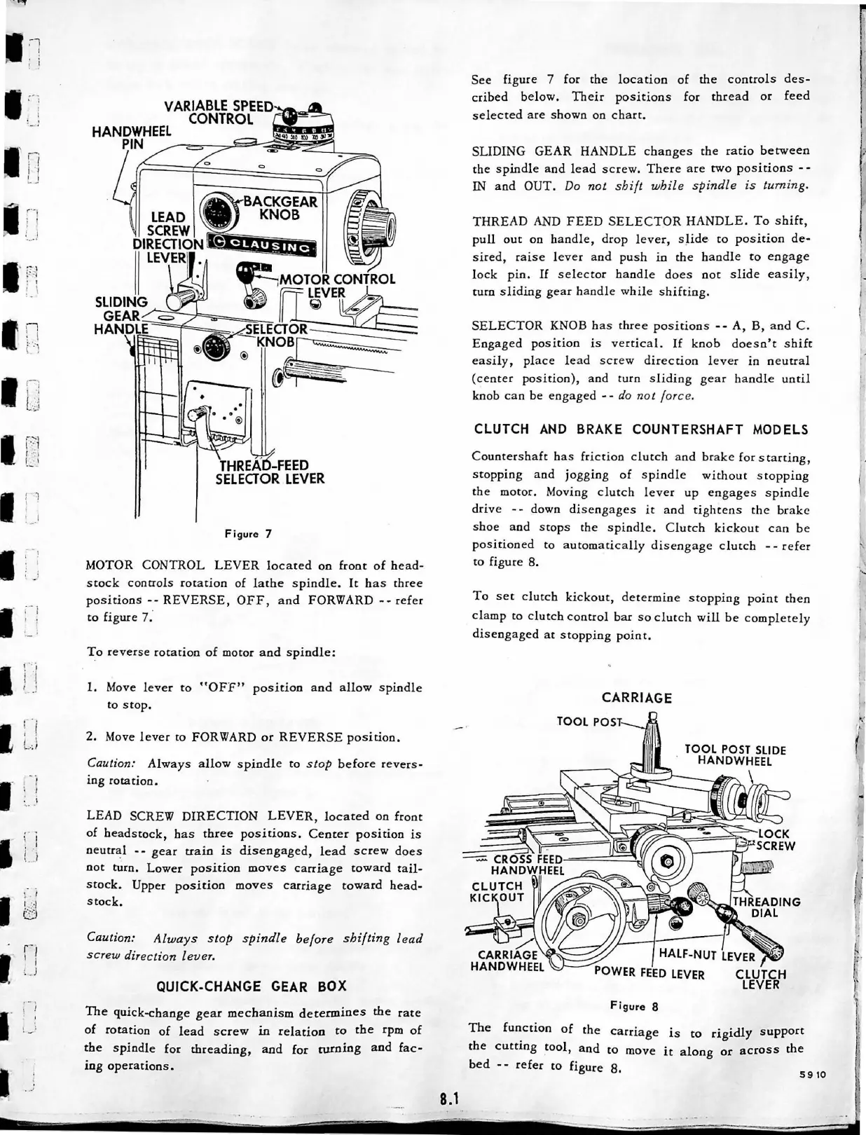 CLAUSING 5914 - Machine Controls; Quick-Change Gear Box