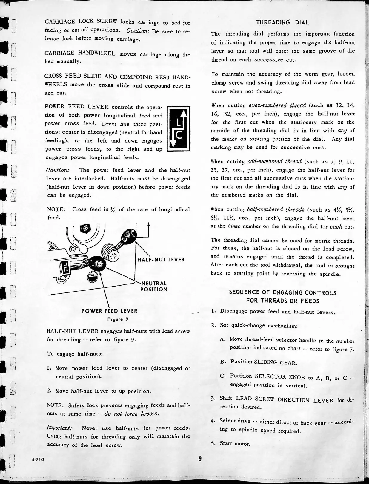 CLAUSING 5914 - Threading and Feed Operations; Threading Dial; Sequence of Engaging Controls for Threads or Feeds