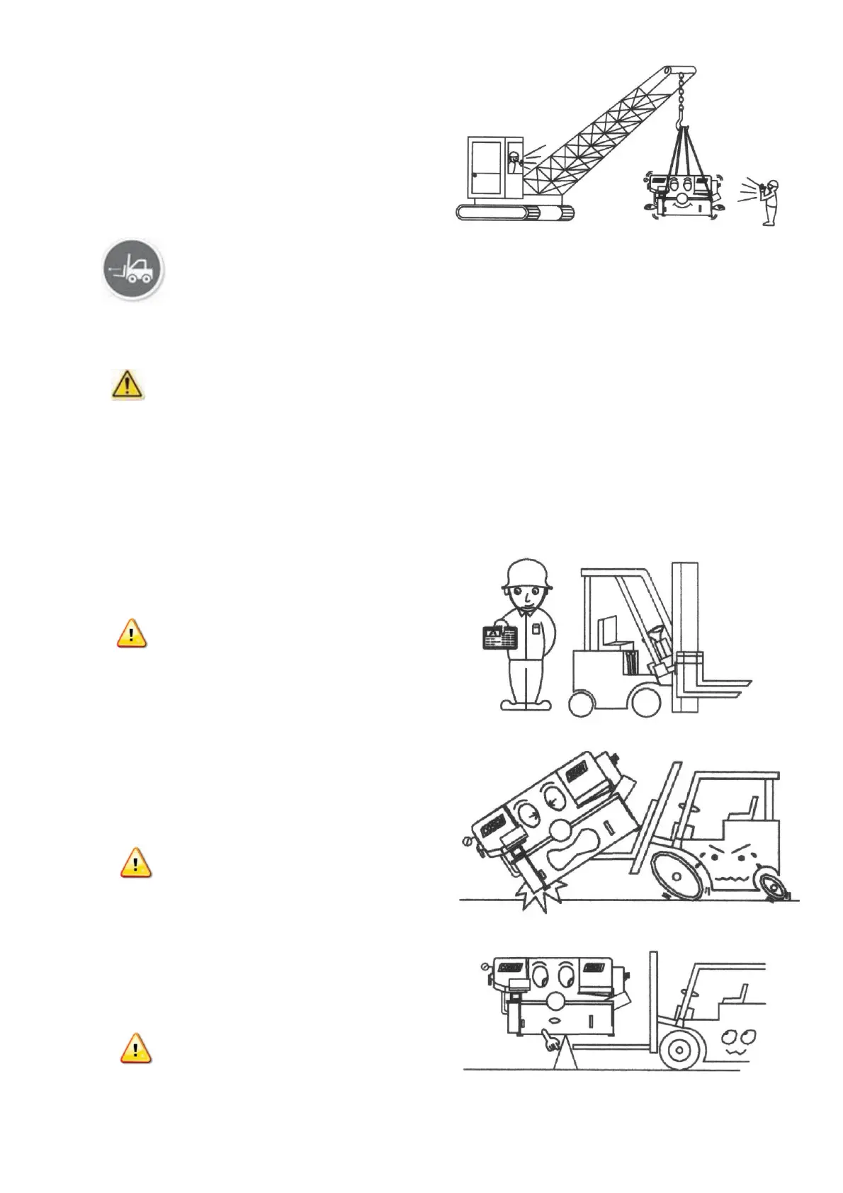 Machine lifting with a forklift should be done strictly according to the lifting points
