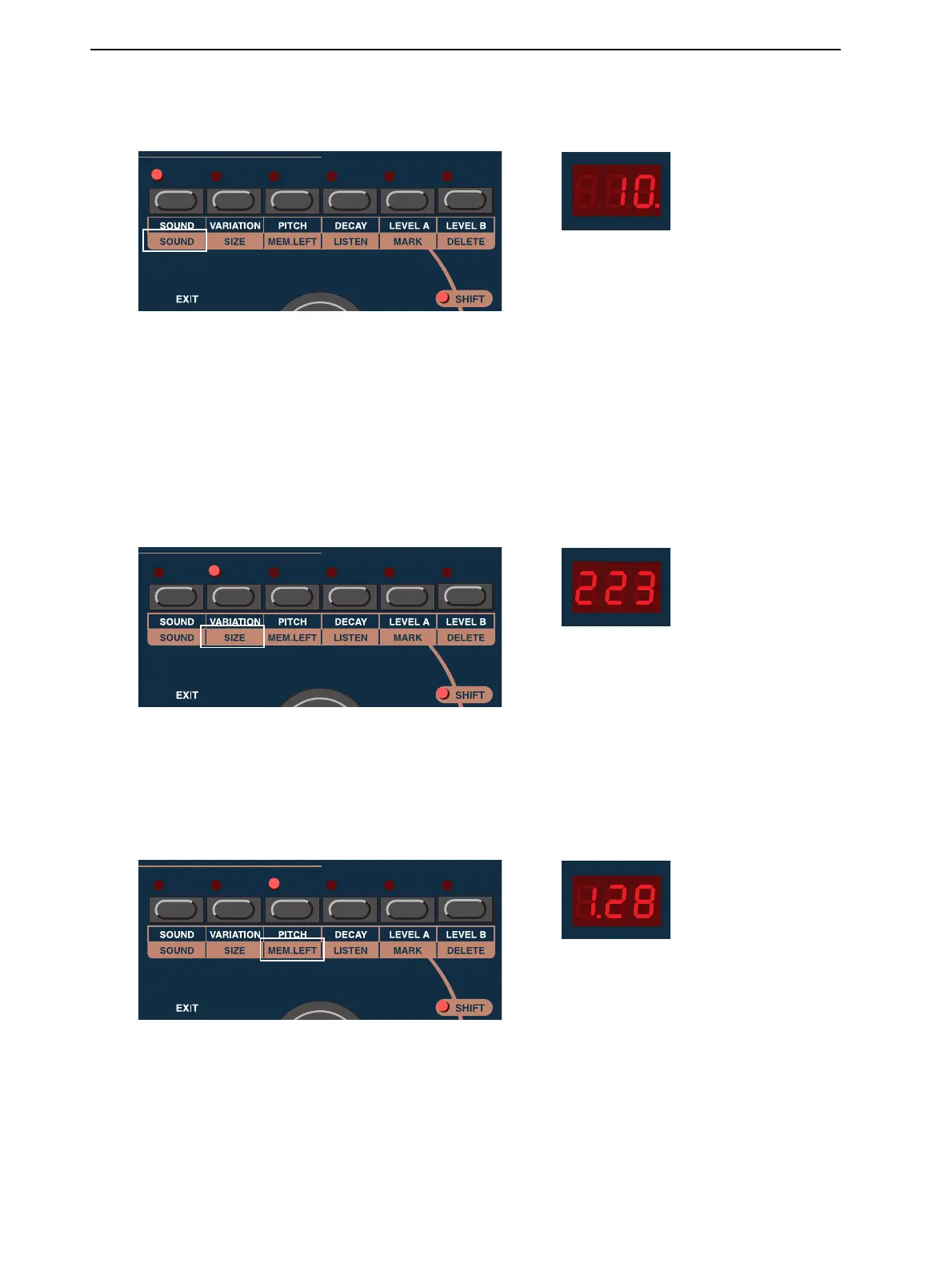 With this function you can select a single sound (or an entire sound group) for Memory Size check, Lis-