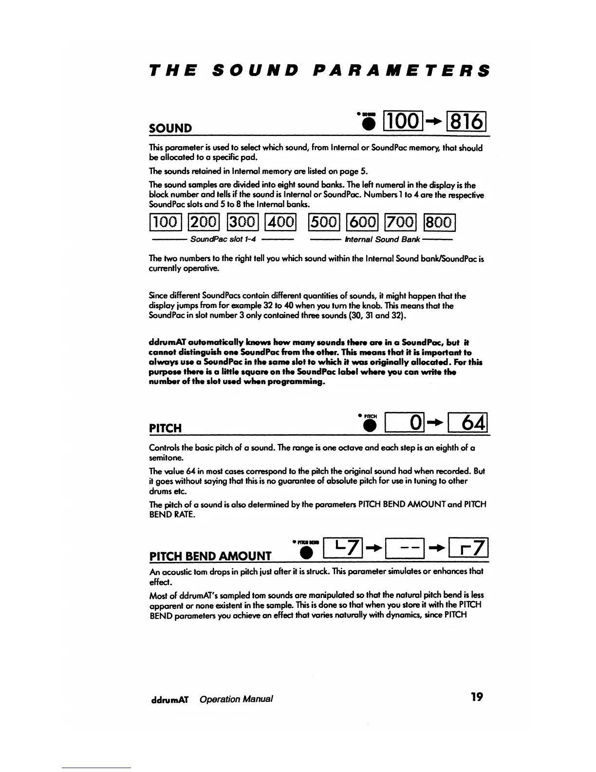 Clavia ddrumAT - The Sound Parameters; Sound; Pitch; Pitch Bend Amount