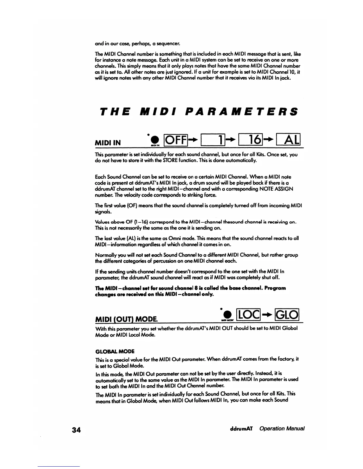 Clavia ddrumAT - The MIDI Parameters; Global Mode; Local Mode; MIDI Out
