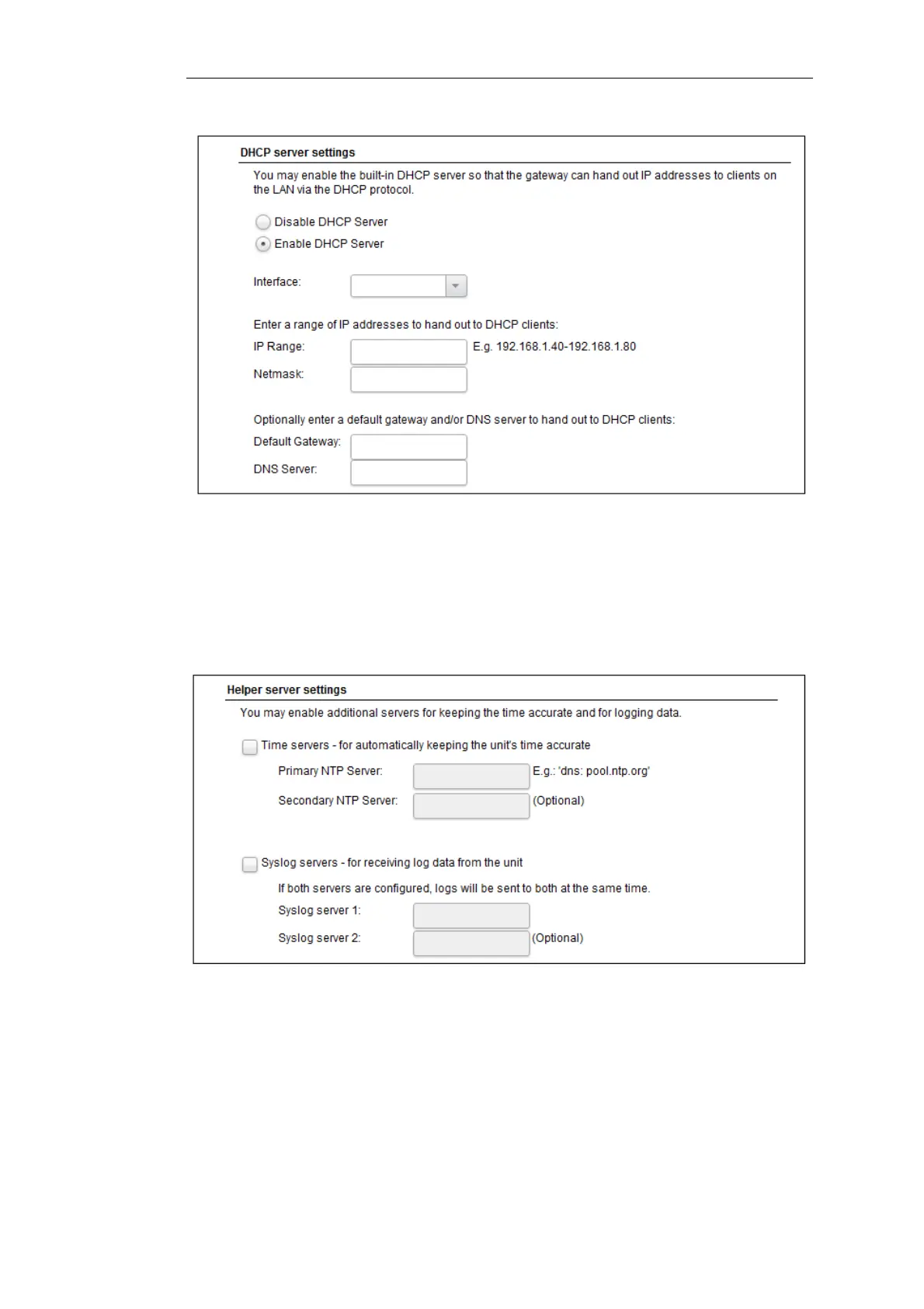 Time Protocol servers keep the system date and time accurate. Syslog servers can be used to