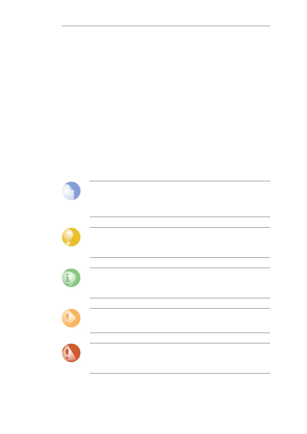 Special sections of text which the reader should pay special attention to are indicated by icons