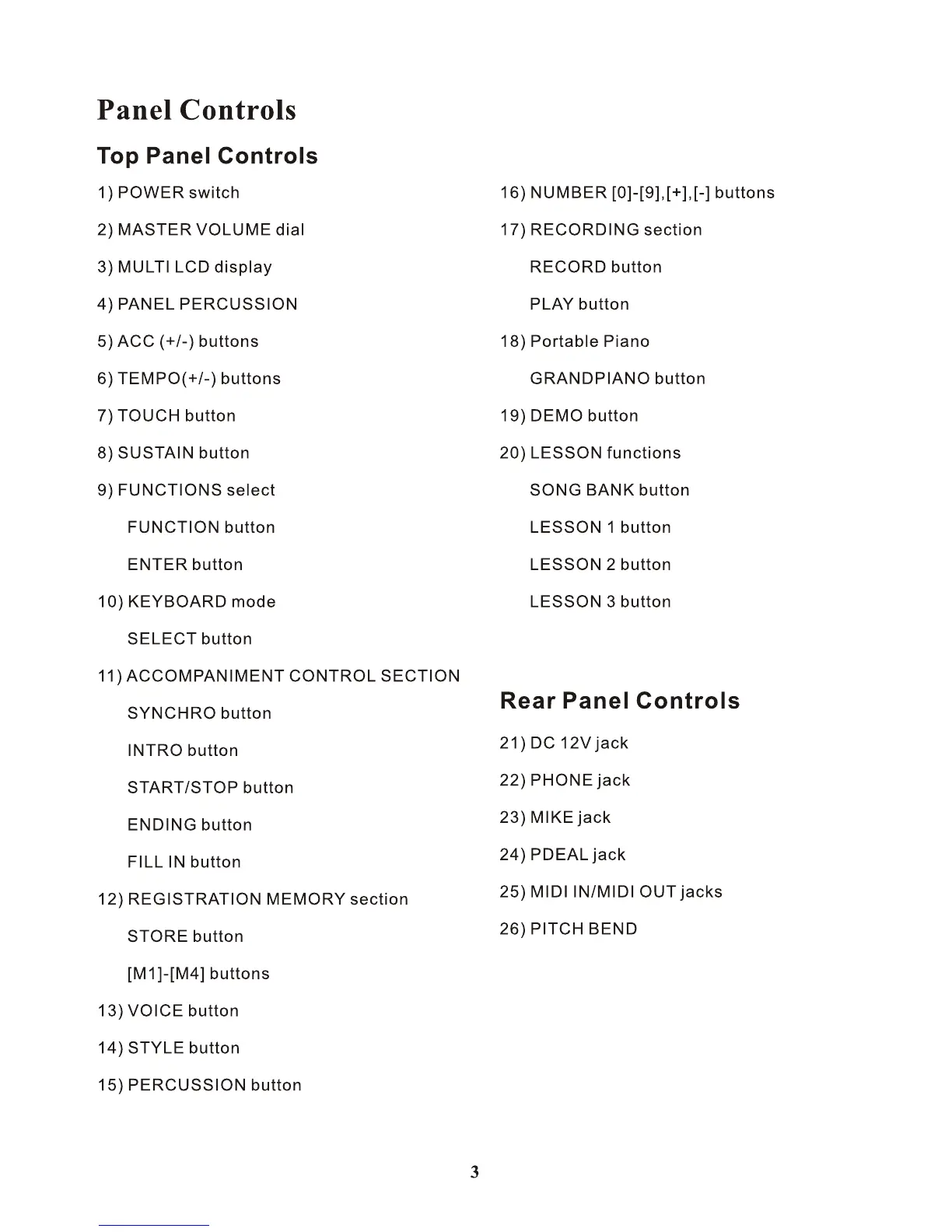 Clavitech TB800 - Panel Controls; Top Panel Controls; Rear Panel Controls