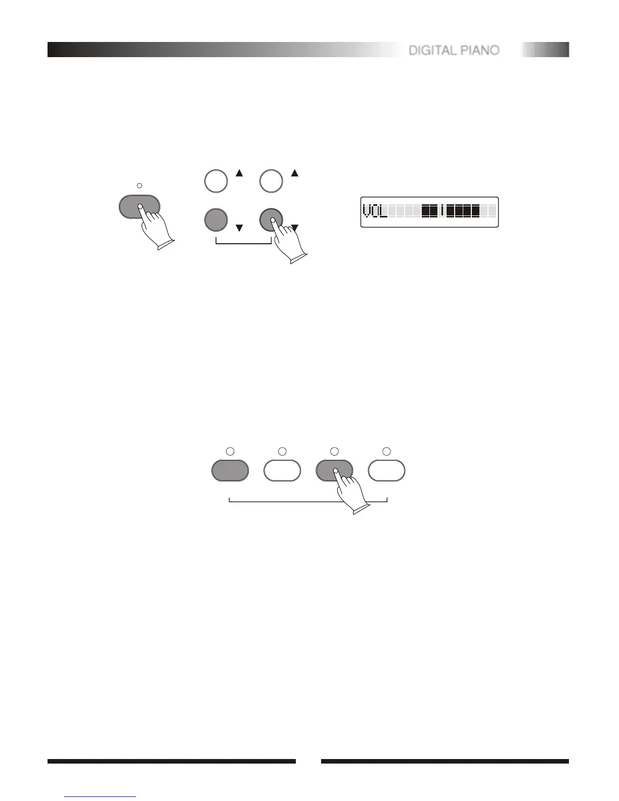 volume by holding [CHORUS] button until the volume appear on the LCD, then using