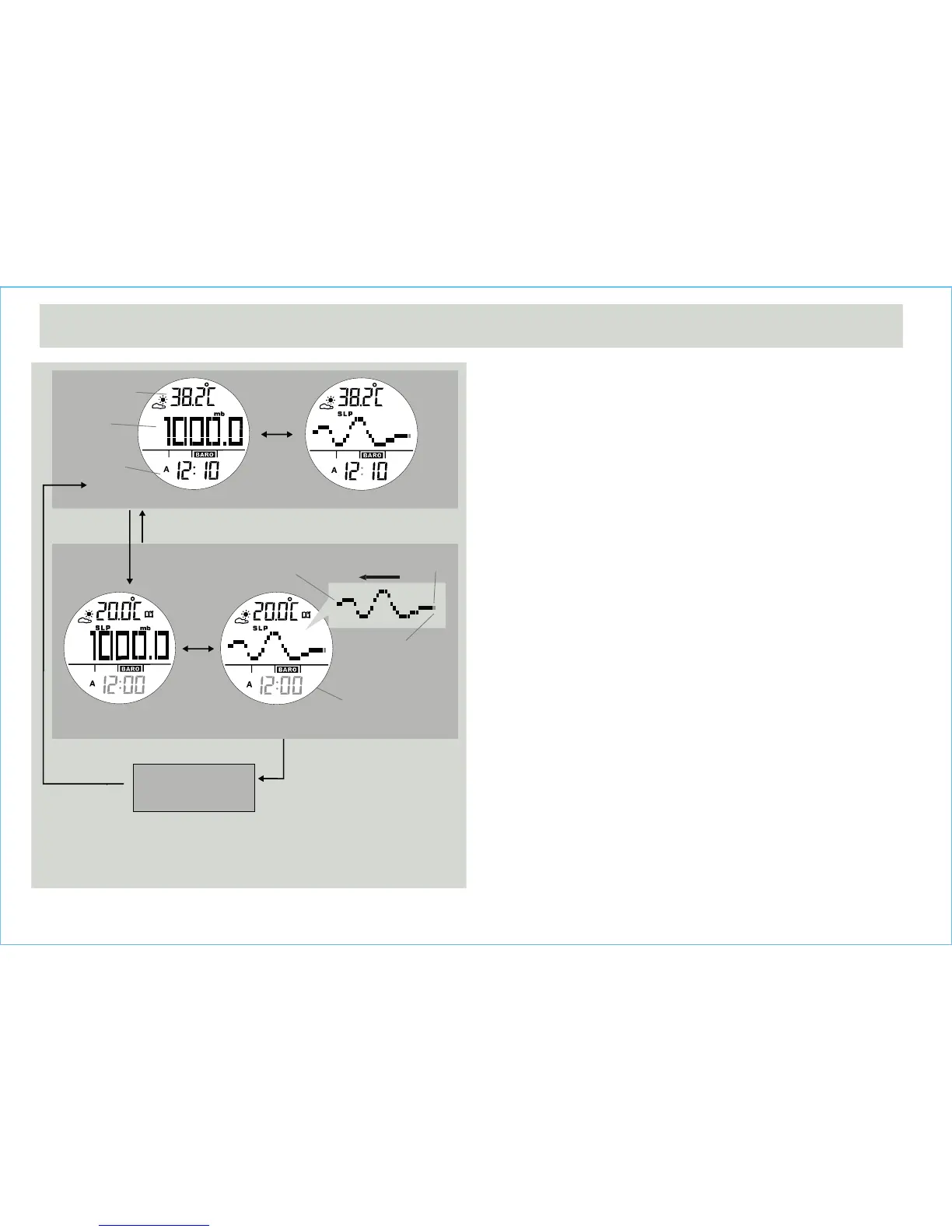 • Barometer mode includes two functional displays: