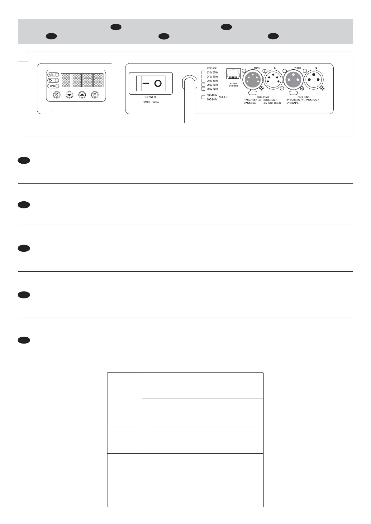 impostazione. Quando si trova nello stato di riposo, il display mostra l’indirizzo DMX del proiettore. Durante lo stato di impostazione del menù,quando trascorre un tempo di attesa (circa