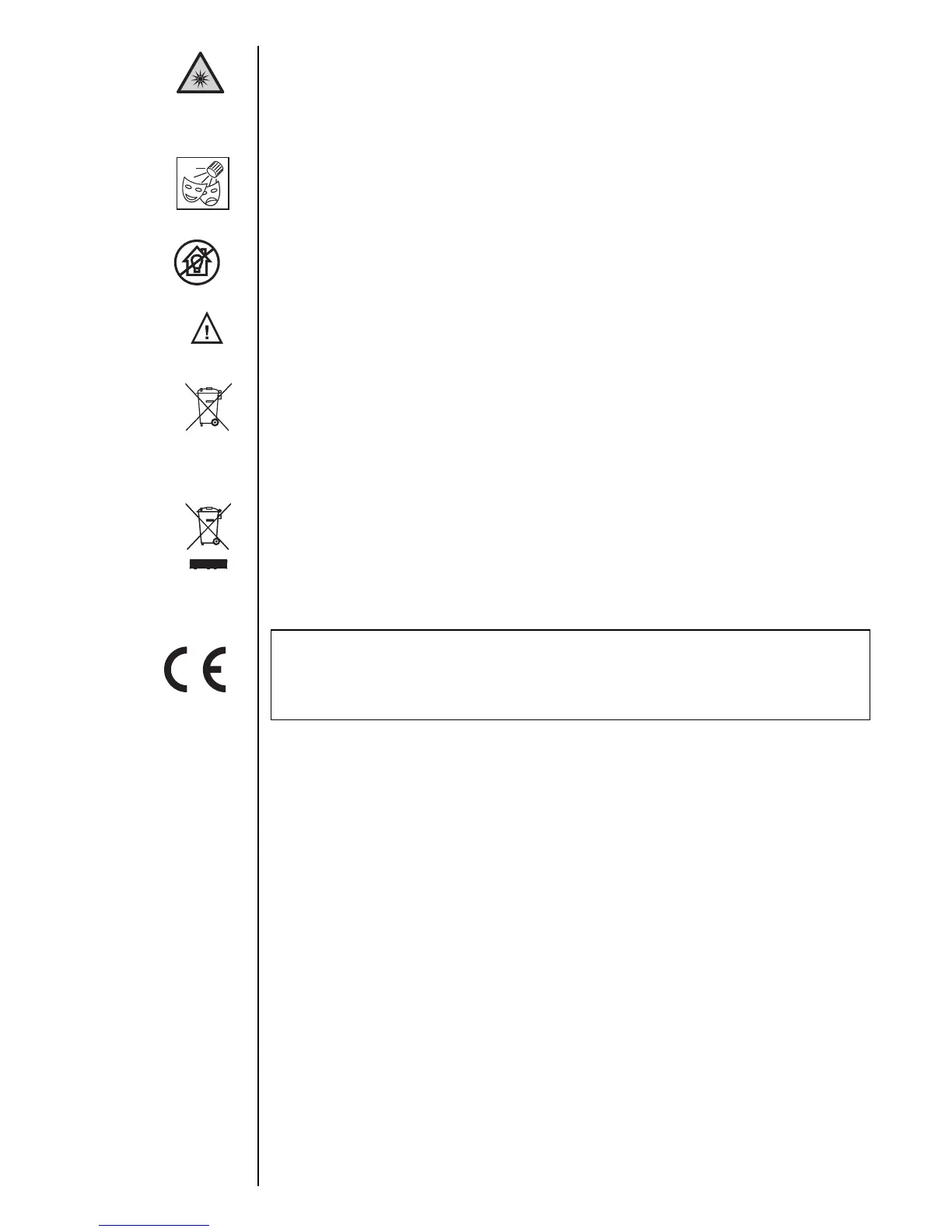 Non guardare il fascio di luce con strumenti ottici o altri strumenti che potrebbero causare convergenza di luce.