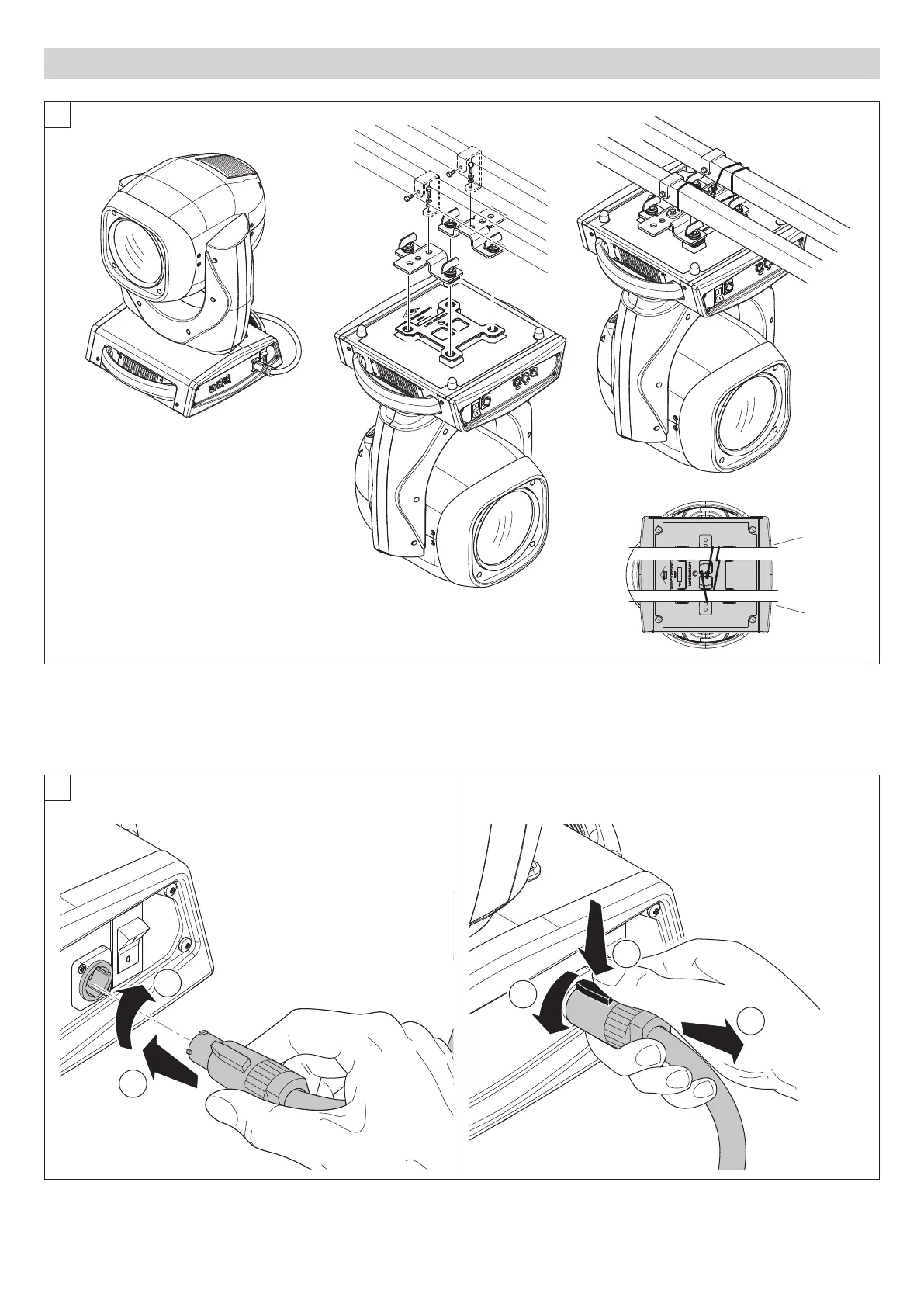 This must be securely fixed to the support structure of the projector and then connected to the fixing point at the centre of the base.