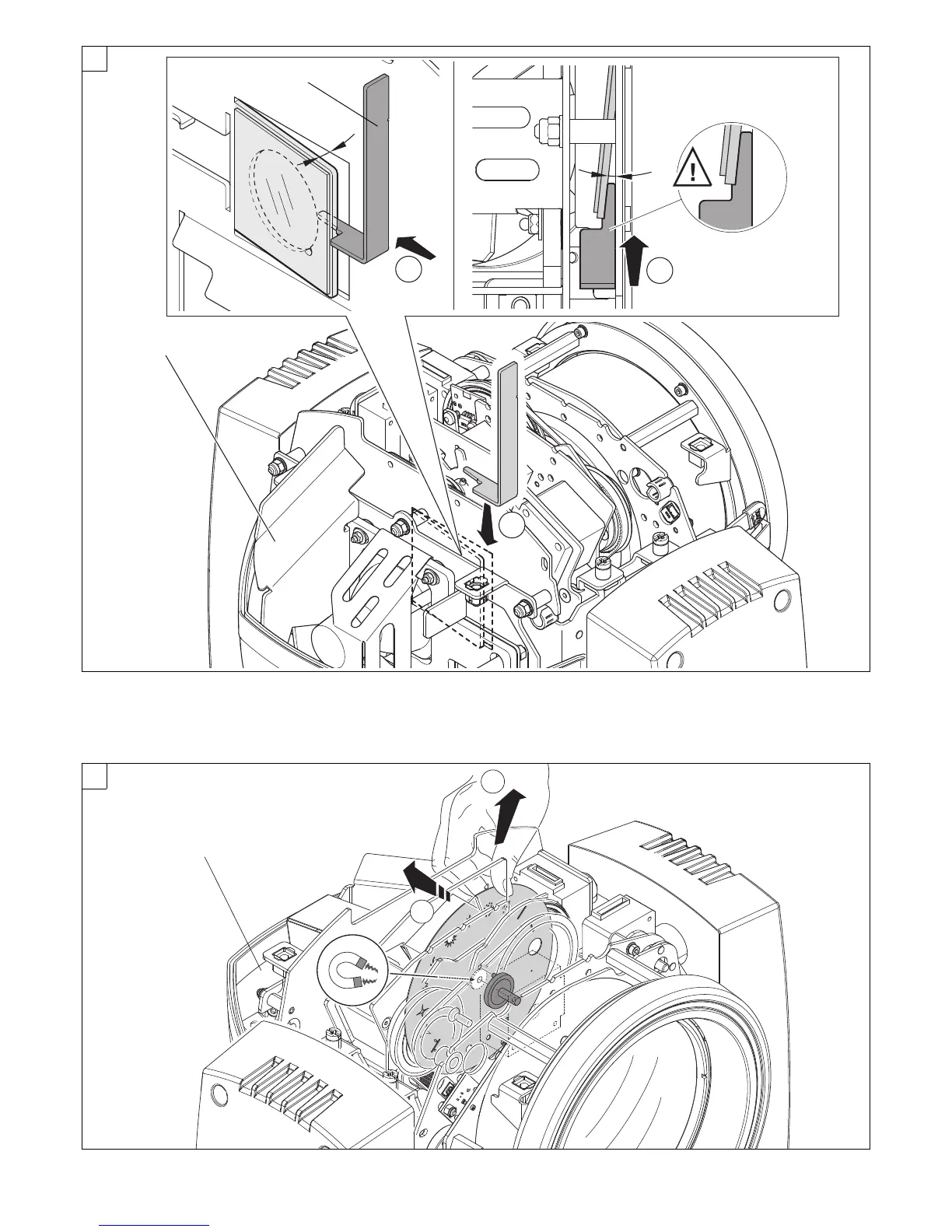 During maintenance and lamp replacement, we recommend you pay close attention to correct anti IR/UV filter support tilt. Incorrect tilt com-