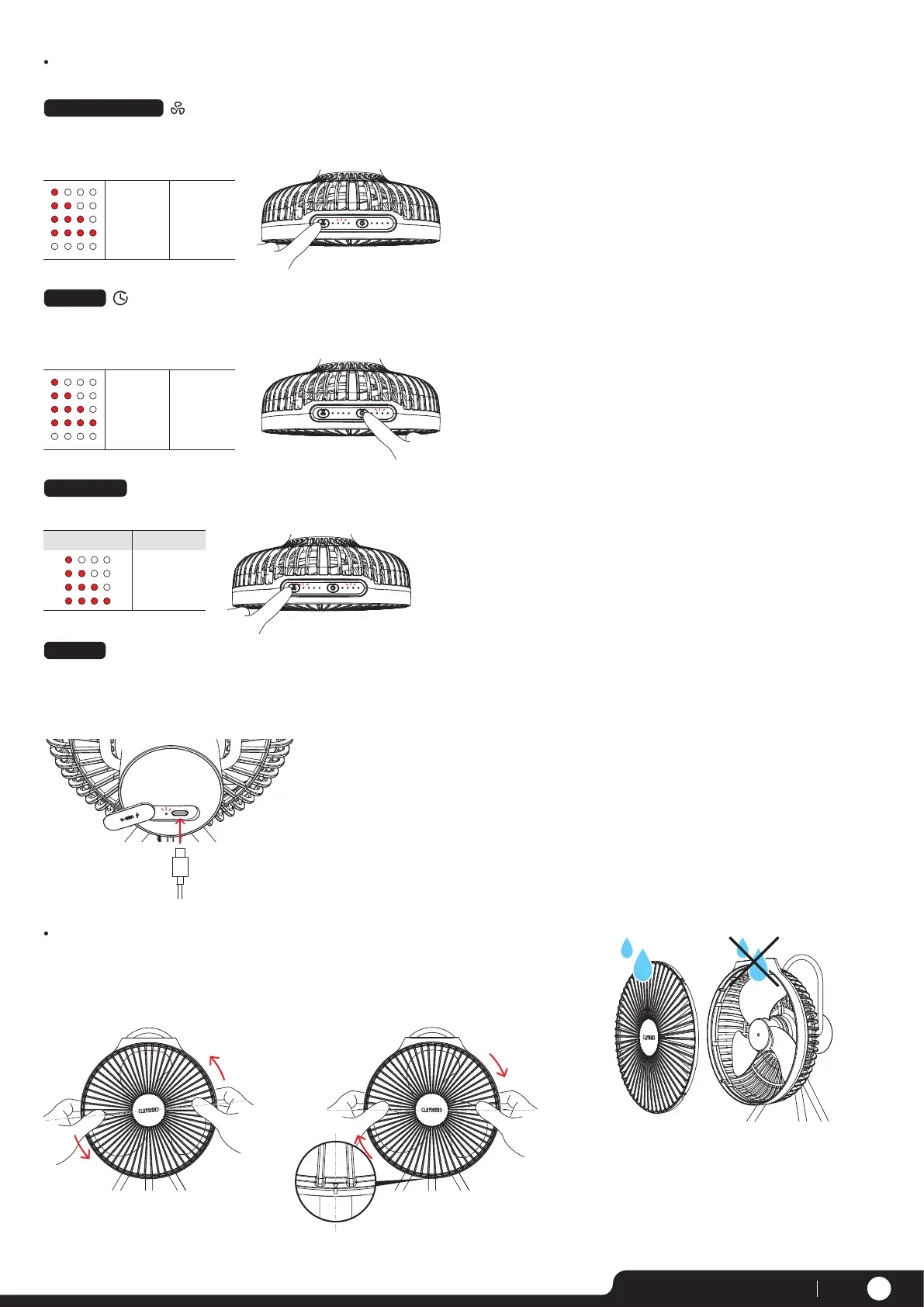 선풍기 전원(풍속) 버튼을 누르면 1단 풍속시 타이머 표시등에 배터리 잔량이 5초간 표시됩니다.