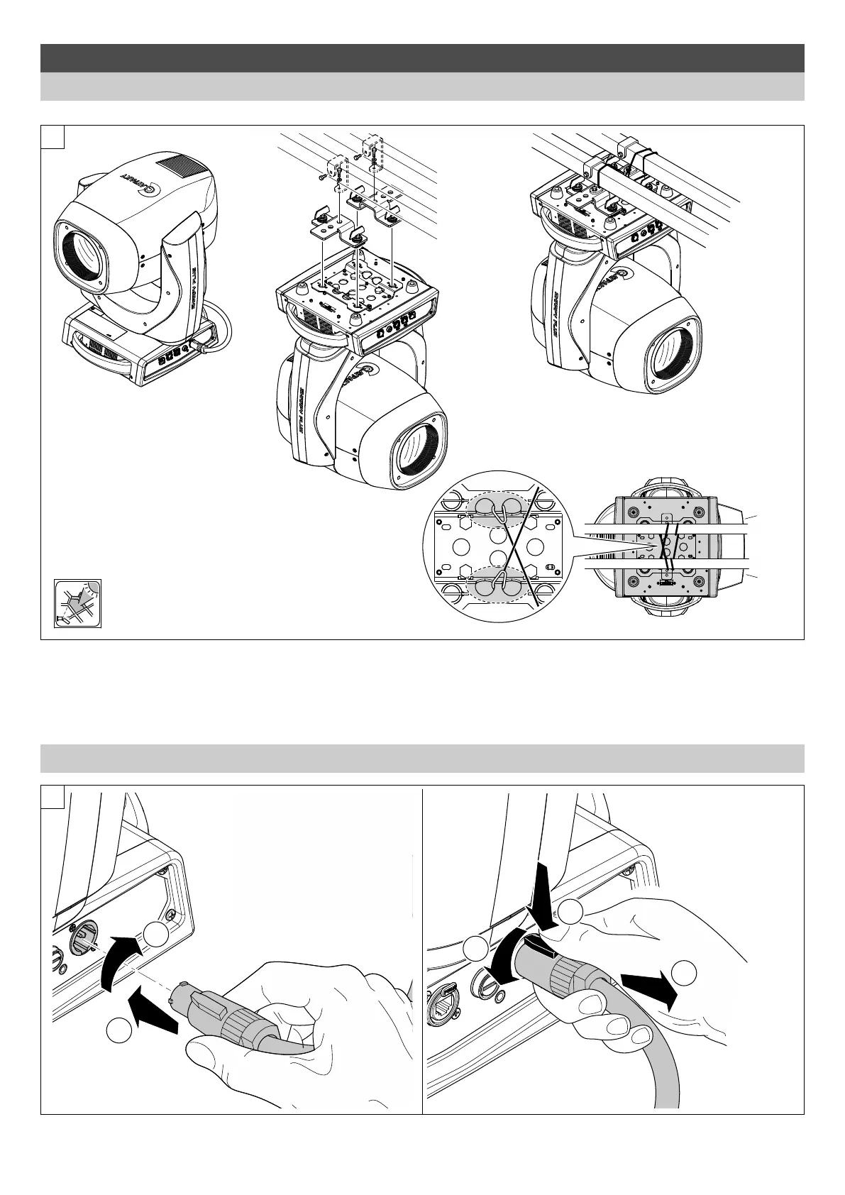 This must be securely fixed to the support structure of the projector and then connected to the fixing point at the centre of the base.