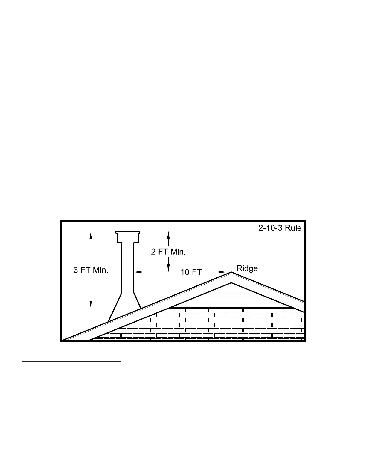 • The chimney must exceed any part of the building or other obstruction within a 10’ (3.04m) distance by a