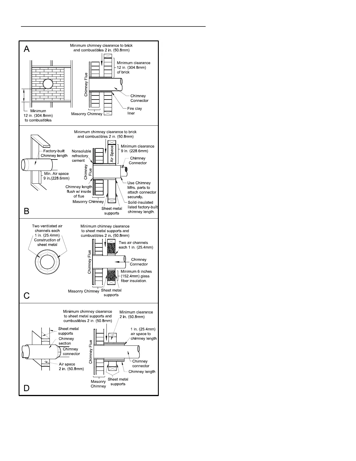 Method D. 2” (50.8 mm) Clearance to Combustible Wall