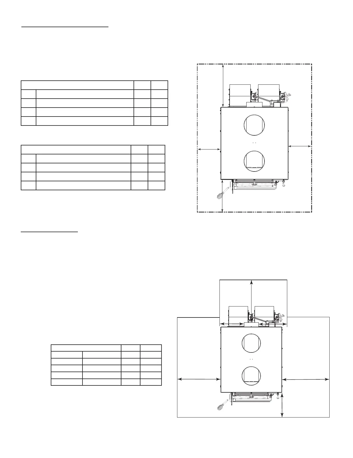 clearances. The clearances will change depending on what kits are installed with your furnace. See the tables